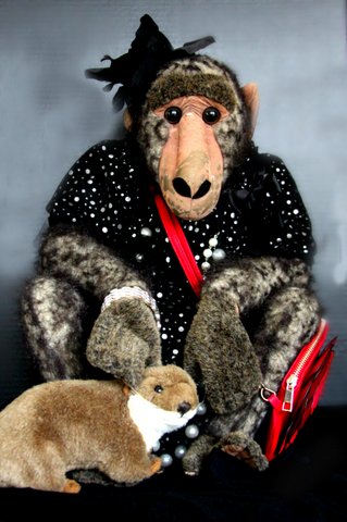 Betty is a Baboon. It is very clear that she is not ordinary. She is life-sized and I thrifted her. I found her face down behind lots of other big animals and I clearly heard her ask me for help. She is so life-like that she actually startled me.