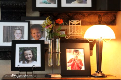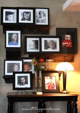 I usually don’t argue much with Mr. R.L. Stevenson but in this case I think that I would like both. The spirit and the face. It is an often quoted phrase that one must do certain things to “make a house a home”. Is there another place on earth where our personalities, preferences and treasures are on display? I love earth tones. Green, Brown, Tan. I love lamps and ambient light. I love collections and photographs. Photographs. This display is about grandchildren. All eleven of them. From time to time I change the pictures when I take a new one and I move things around to make them more interesting. There are zillions of ways to display the faces of the people we love. This is just one. My shelves are metal, not wood. They are lightweight. Some are long and some are short. All of the photography is my own. That means something to me. When the grandchildren come to visit, they stand in front of this display and point to their cousins. Even the little ones like to try to get all of the names right. It is easy to take for granted our easy access to photographs. Unlike our ancestors who might have had one or two portraits taken in their lifetimes if that, we can literally watch children and grandchildren grow before our photographic eyes. There is little excuse for getting down the road only to find that we are missing the face of someone we love.