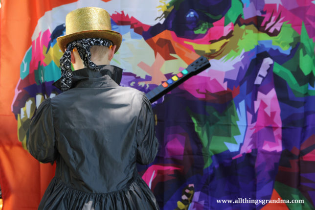 The bright colors and the “pixels” were especially fun for eclectic costumes and goofy stuff. Here is Andrew from the front and below is Andrew from the back.