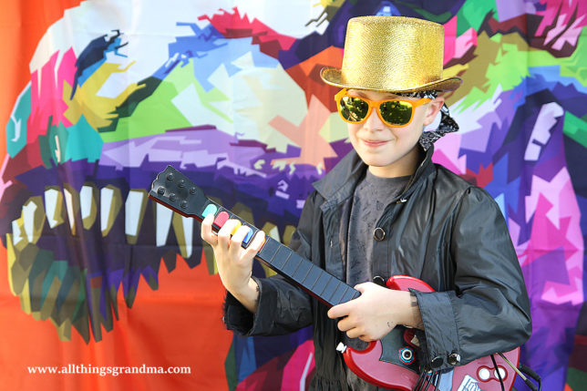 Grandpa built two frames out of PVP Pipe. One set of shower curtain rings will hold about 6 or 7 curtains. Each person can choose a backdrop and throw it over the top of the frame to put his or her choice in front.