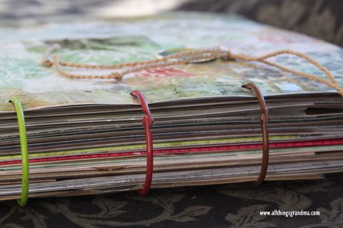 The journals of young granddaughters are for memories, sorrows, joys, questions, confusion, gratitude, fashion, poetry, friends, food, clothes, jewelry, dogs and cats. If the journal is eclectic to begin with, it may be easier to just write anywhere, in any direction and with any color of ink. Photographs can be held with tape or paper clips. They can be tied onto the page through a punched hole. Anything goes.