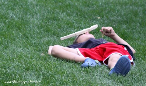 I said that I had a rule. It is true that I often have “a rule” about something. This time the rule was that you could only shoot things but not people. Rubber bands hurt. Okay they said. So, they messed around. Grandpa found some empty soda cans and lined them up on a chair. He told them that if you put something behind your target you won’t lose your rubber bands.