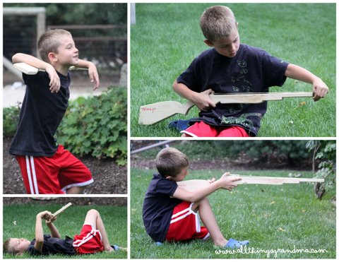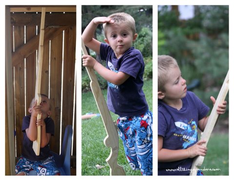 Is there anything this Grandpa can’t do? Not that I’ve noticed. Boys and guns have gone together since who knows when. These are safe guns. The only trouble they can cause is a welt or two if you break the rules and snap a person with a rubber band. Grandpa made patterns. He always has patterns in his head. Then he used the jig saw and cut out two rifles and two pistols. He sanded the edges smooth. He glued clothespins to the rifles and hightailed it over to Home Depot for large elastics. When Talmage and Holden came over to play, guess what they found? Yup. Wonderful wooden guns. They were in heaven.
