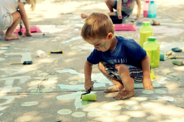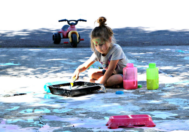 Grandmothers with weak hearts should not look at these photographs. The saving grace of sidewalk paint is that it washes right off with the hose as do the children.