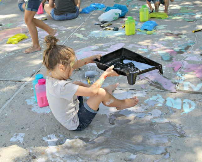 I love doing sidewalk paint. It is so fun and and, you’re right, easy to clean up!