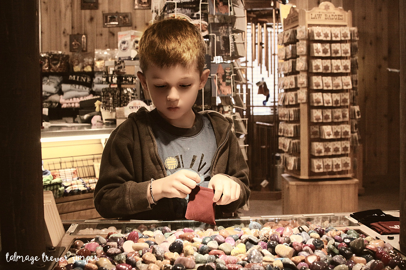 The polished rocks with their velvet drawstring bags have always been favorite keepsakes from years of visits to the mine. Children chose rocks with great care and resisted being rushed to decide.