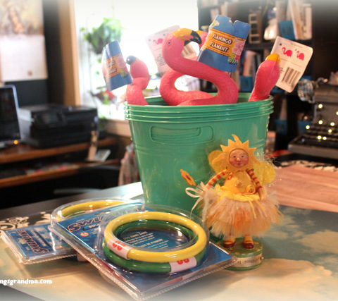 (blindfold, net, rubber pigs and ducks and 2 gold mermaids)