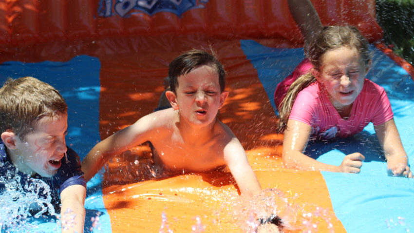 I saw Maya throw balls into the pool while Olive threw them out the other side.
