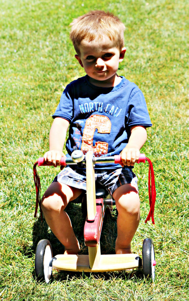 I saw Tucker ride his favorite trike down the hill without crashing.